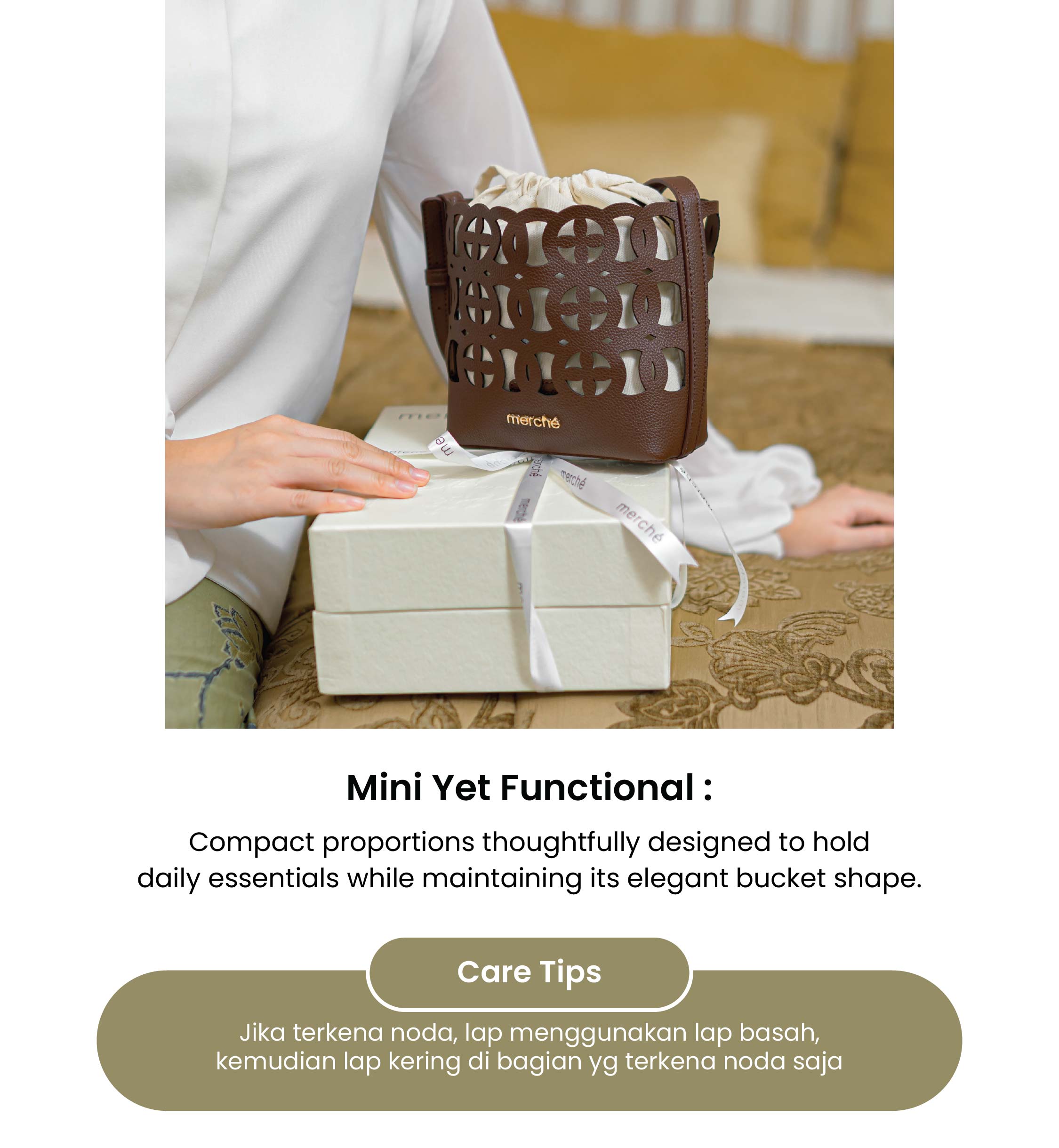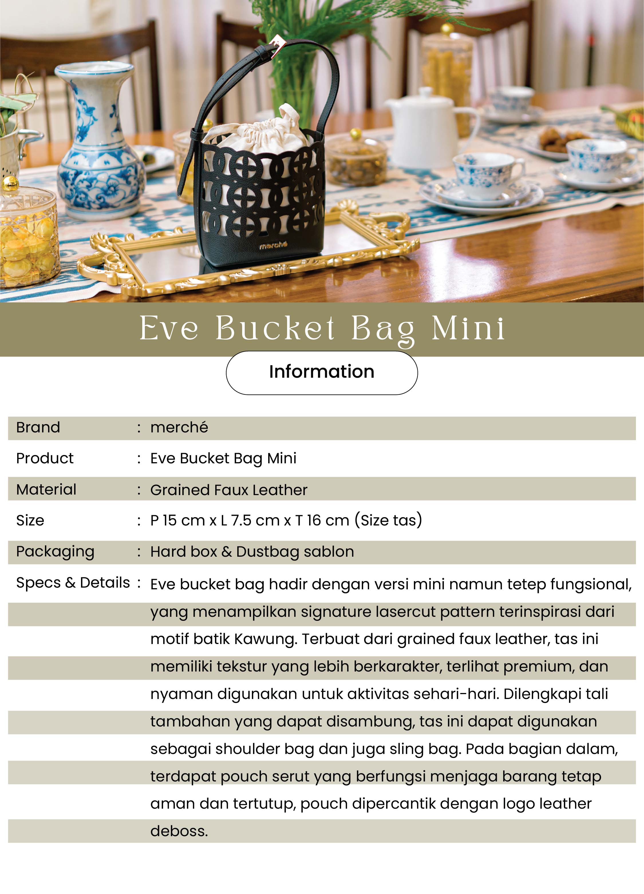 - Festive Bag: Bentuk yang unik namun tetap cantik menjadikan tas ini cocok digunakan untuk hari raya