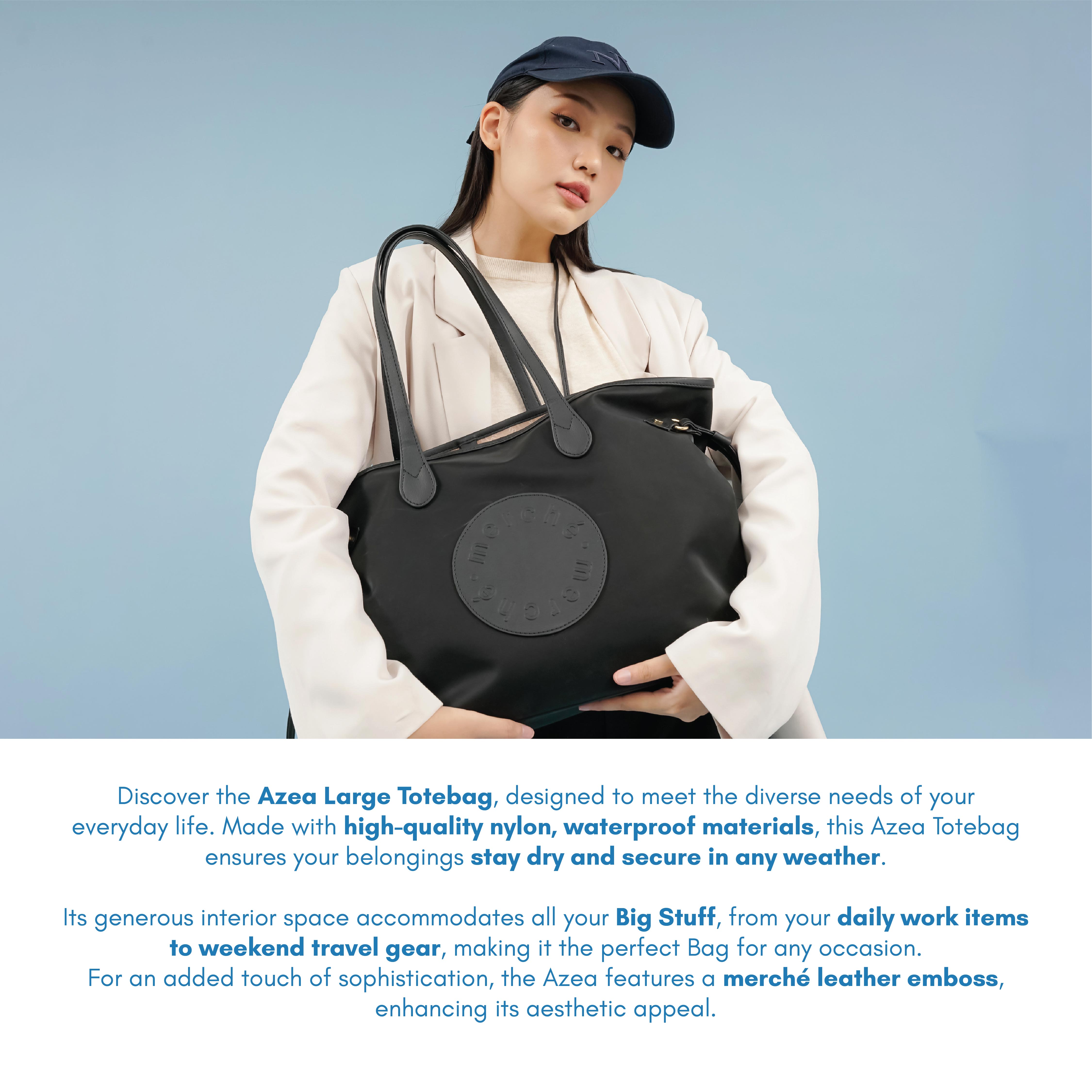 cover the Azea Large Totebag, designed to meet the diverse needs of your everyday life. Made with high-quality nylon, waterproof materials, this Azea Totebag ensures your belongings stay dry and secure in any weather.
