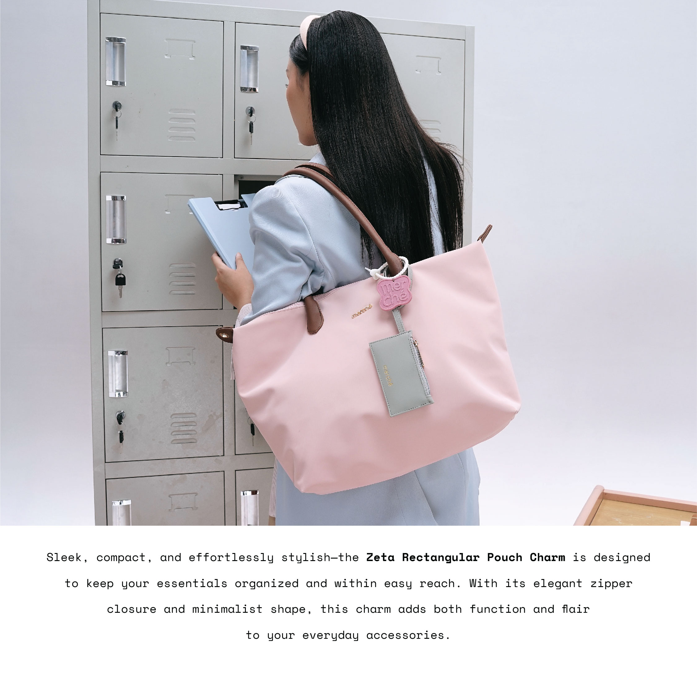 Sleek, compact, and effortlessly stylish—the Zeta Rectangular Pouch Charm is designed to keep your essentials organized and within easy reach. With its elegant zipper closure and minimalist shape, this charm adds both function and flair to your everyday accessories.