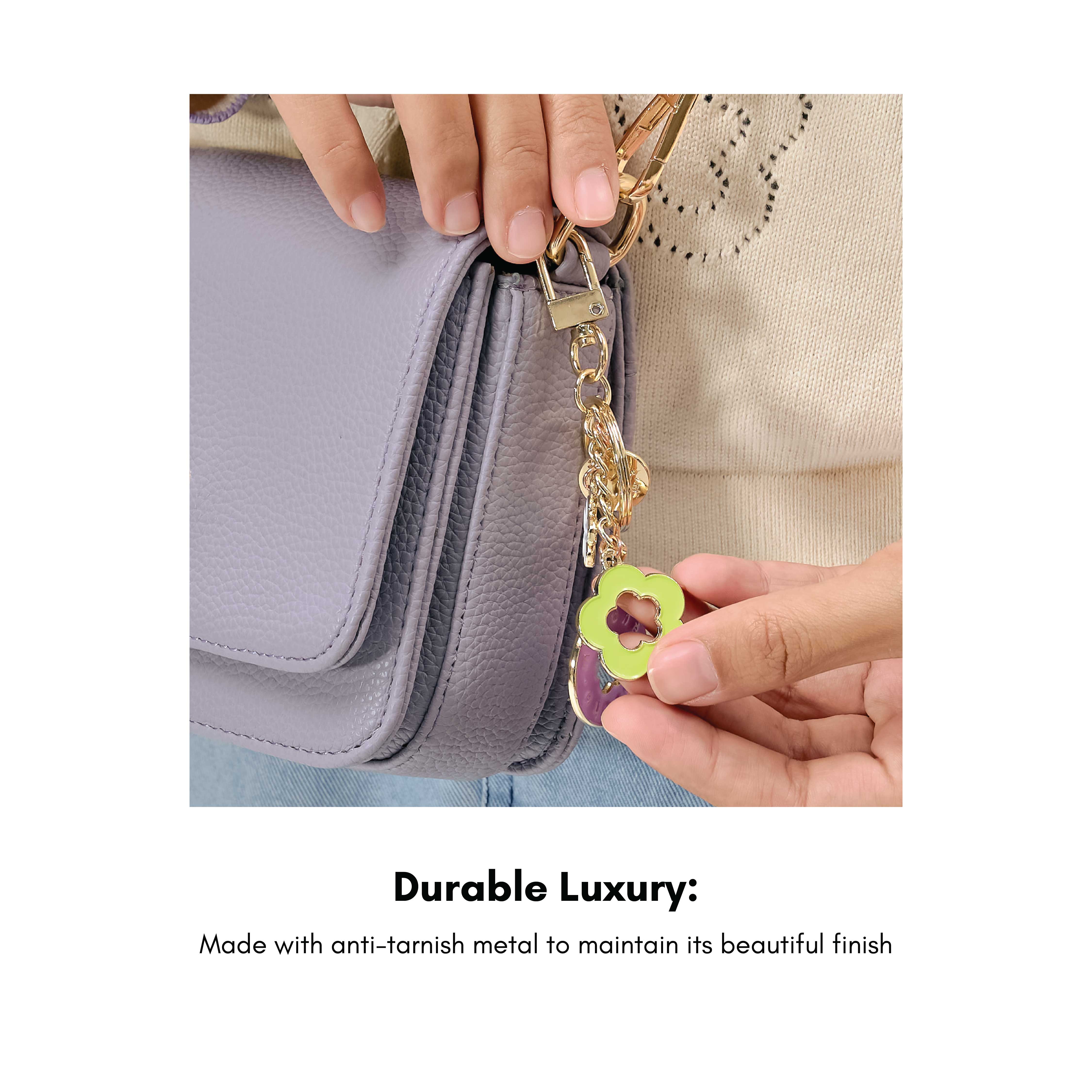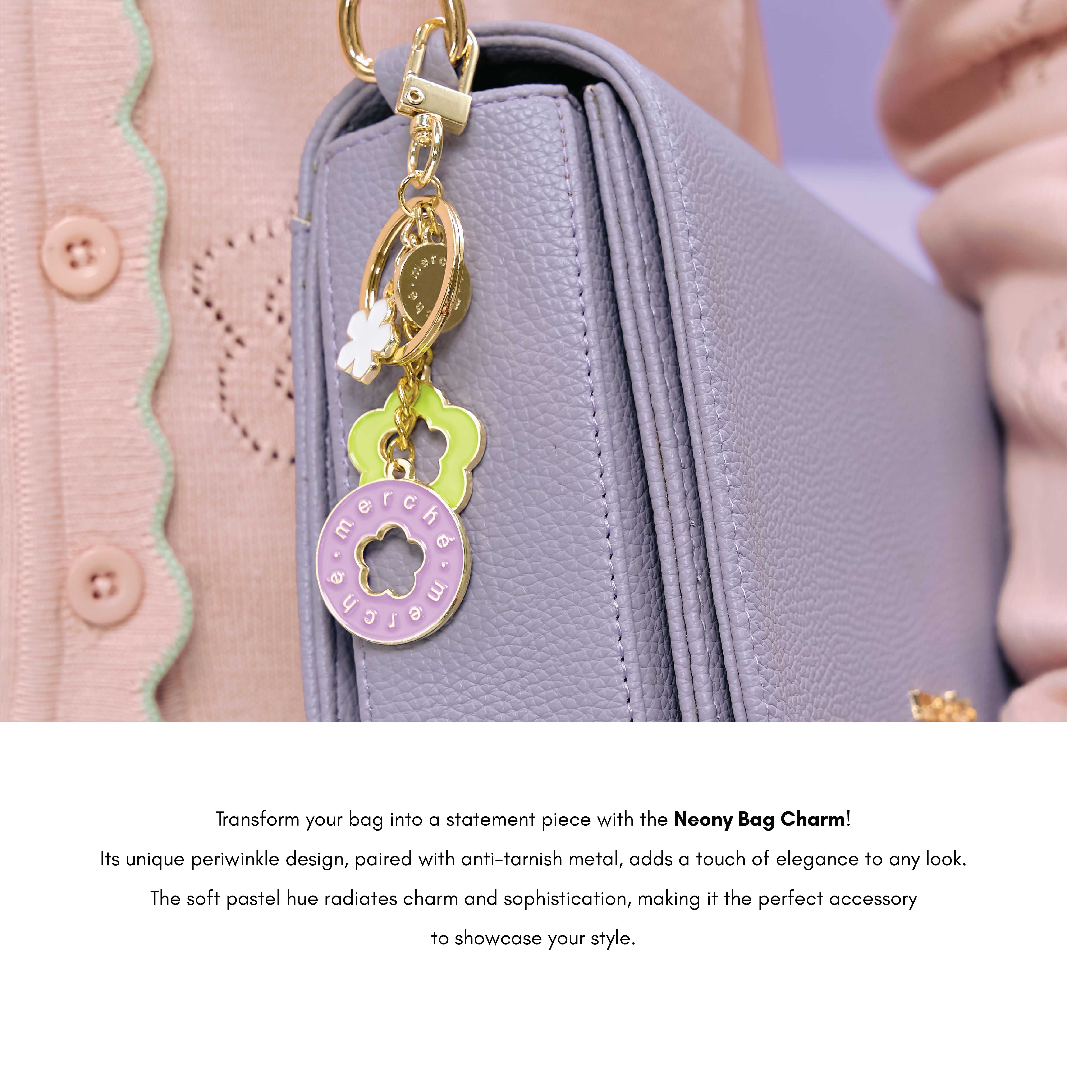 Transform your bag into a statement piece with the Neony Bag Charm! Its unique periwinkle design, paired with anti-tarnish metal, adds a touch of elegance to any look. The soft pastel hue radiates charm and sophistication, making it the perfect accessory to showcase your style.