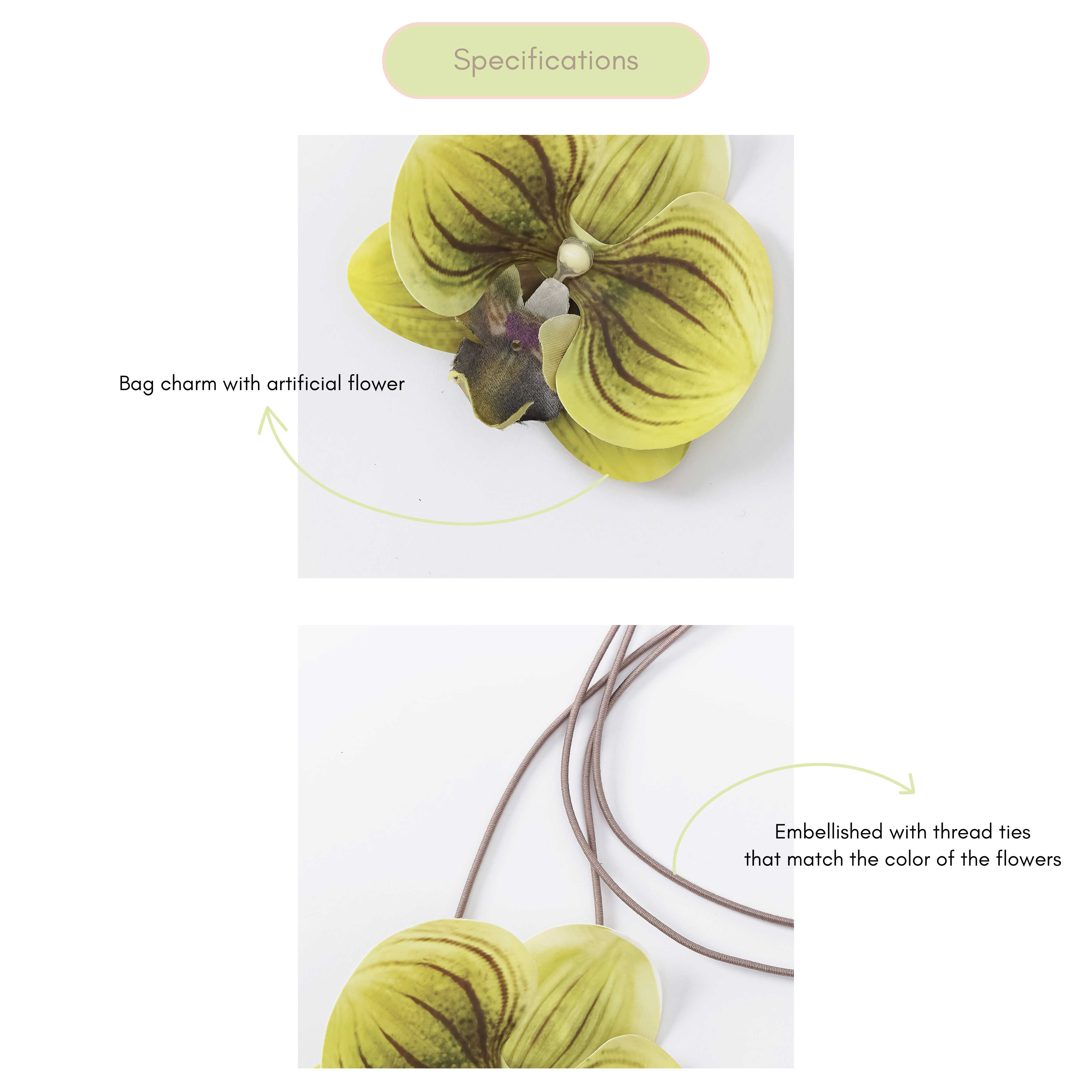 Bring a fresh, floral touch to your bag with the Orchidia Bag Charm. Featuring a beautifully crafted faux flower, this charm is a perfect balance of nature and style. Thread ties in matching colors add a soft accent, bringing out the charm's soft, natural beauty. Whether you're looking to add a pop of color or a subtle touch of sophistication, this charm is the perfect accessory for your bag.
