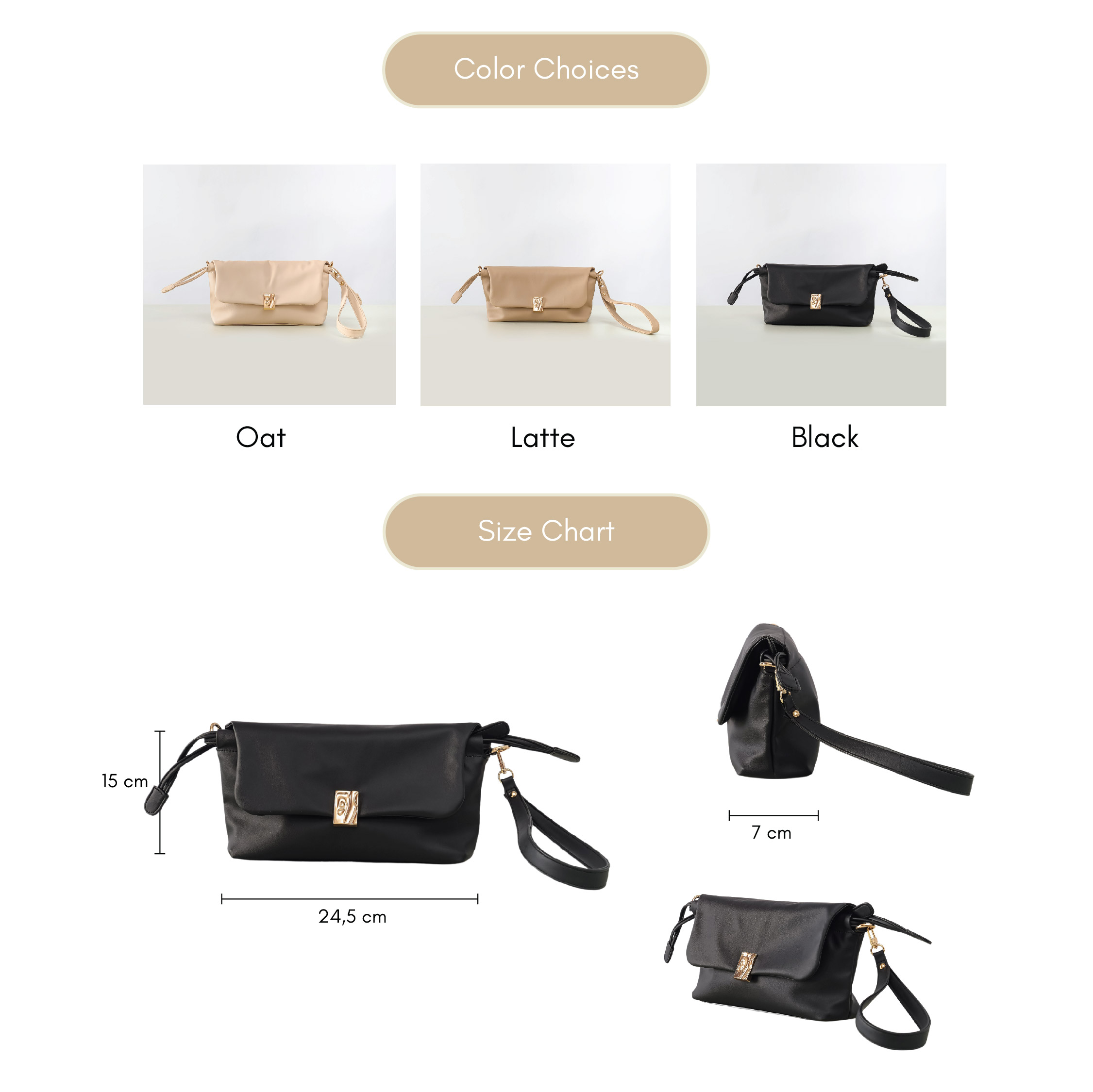 The mini version of our versatile 3-in-1 bag offers all the elegance and flexibility of its larger counterpart, now in a more compact form. Mina Bag Mini Crafted from vegan leather, it easily transitions from a shoulder bag to a sling bag or clutch, making it the perfect choice for those on the go. Its sleek design and thoughtful structure carry your essentials with ease. Whether for a night out or a quick outing, this bag has you covered.