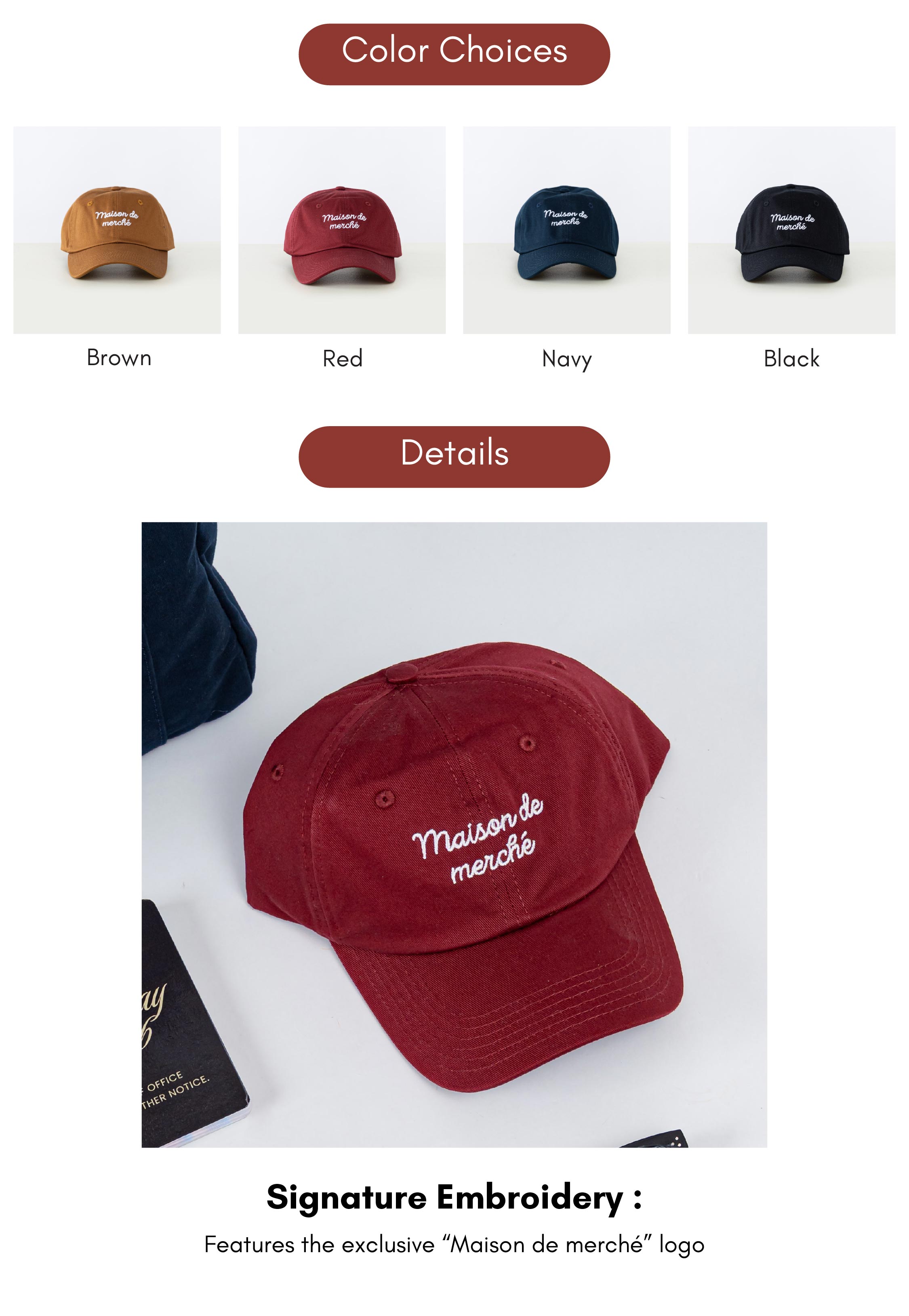 Classic meets casual in the Maison de merché Cap, where everyday comfort gets a refined merché twist. Crafted from breathable cotton twill, it’s designed with a timeless 6-panel silhouette and an adjustable back strap for a personalized fit. The embroidered “Maison de merché” logo at the front adds a subtle statement of effortless sophistication. Perfect for travel days, sunny strolls, or simply elevating your laid-back look.