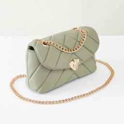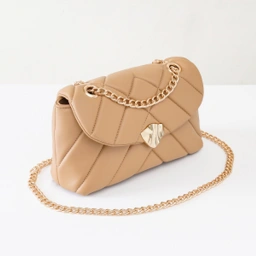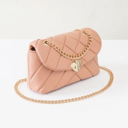 berbentuk persegi Panjang dengan permukaan tas yang di jahit menggunakan teknik quilting membentuk motif zigzag yang dipadukan dengan keylock gold berbentuk kerang di bagian tengah dan plat logo merche dibagian belakang . Terdapat 1 ruang bagian dengan 1 pocket zipper kecil dan 1 pocket non zipper serta penambahan puring satin dan washing instruction didalamnya. Dilengkapi chain gold Panjang sehingga dapat dikenakan sebagai hand bag, shoulder bag , cross over bag maupun sling bag .
