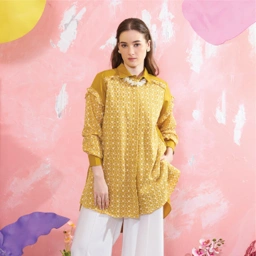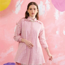 Simple, sweet, chic. Meet Milla Shirt yang super catchy dengan material mix Cotton & Lace serta aksen frills di bagian dada dan lengan. Detail slit di bagian samping dan bagian belakang shirt yang lebih panjang membuat kamu lebih nyaman untuk bergerak. Should we say, it's a basic with a twist!