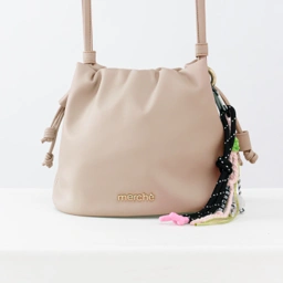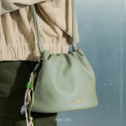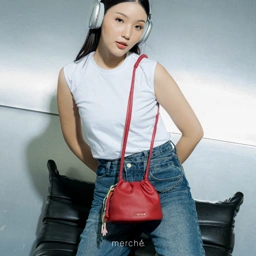 - Unique: Berbentuk bucket dengan bukaan Bukaan drawstring yang mudah untuk dibuka tutup serta aksen lilit pada sling