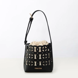 Introducing the exquisite Eve Bucket Bag, adorned with the intricate Cut Out Pattern Flower design, a stunning addition to this year's Flower Bliss