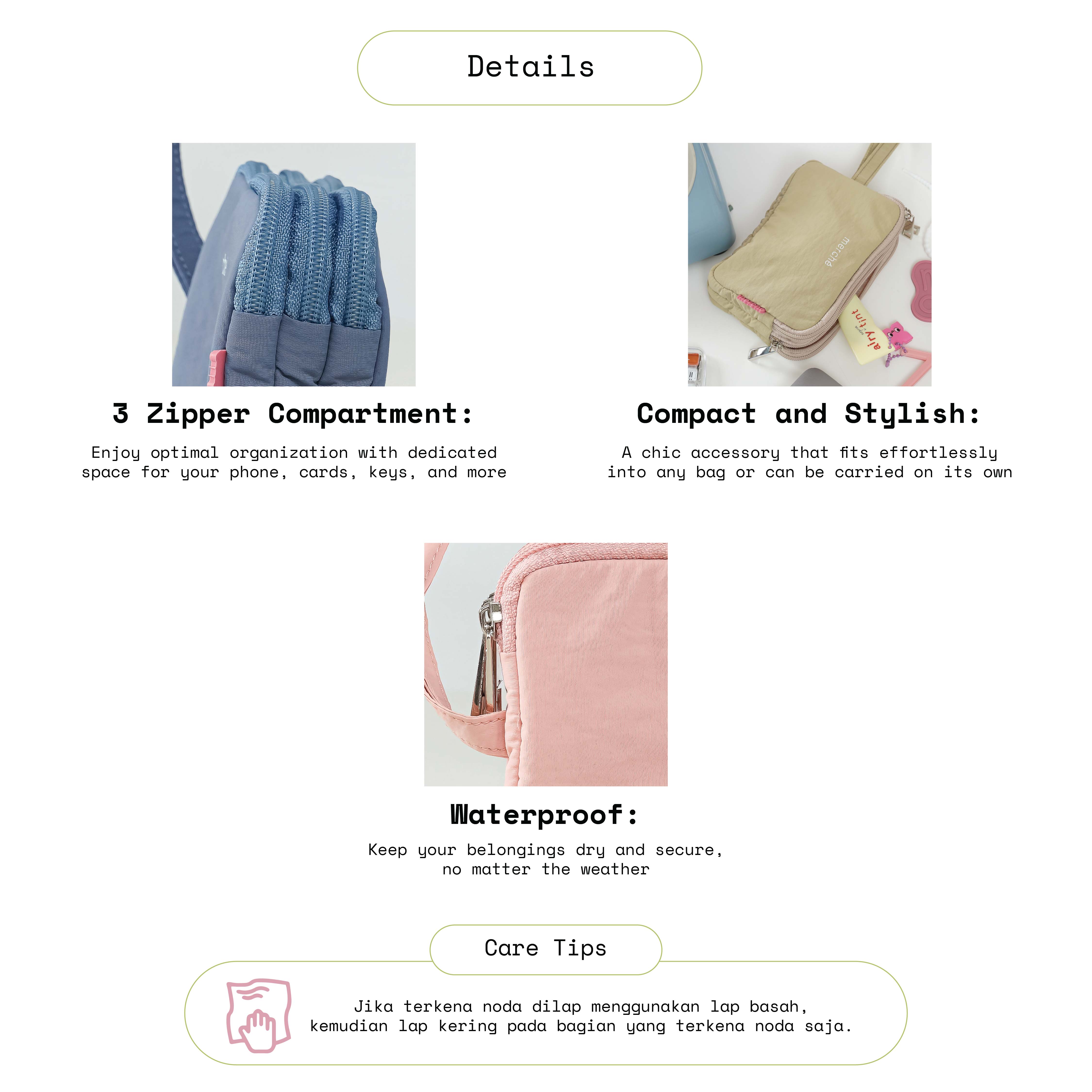 Elevate your organization game with the Elena Pouch, featuring three secure zipper compartments, this sleek accessory ensures that your essentials are neatly organized and readily accessible. Its compact size allows it to fit effortlessly into any bag or be carried on its own.