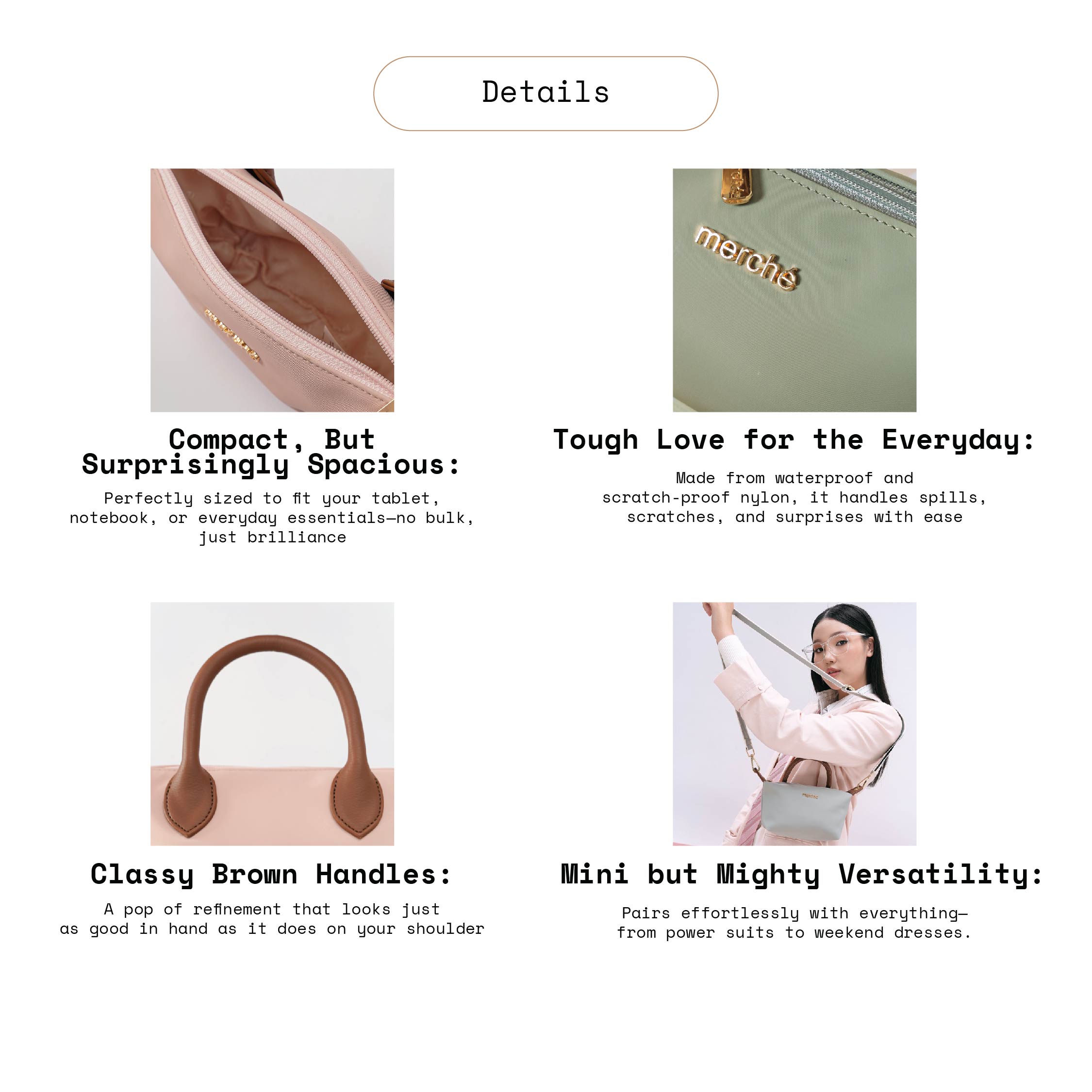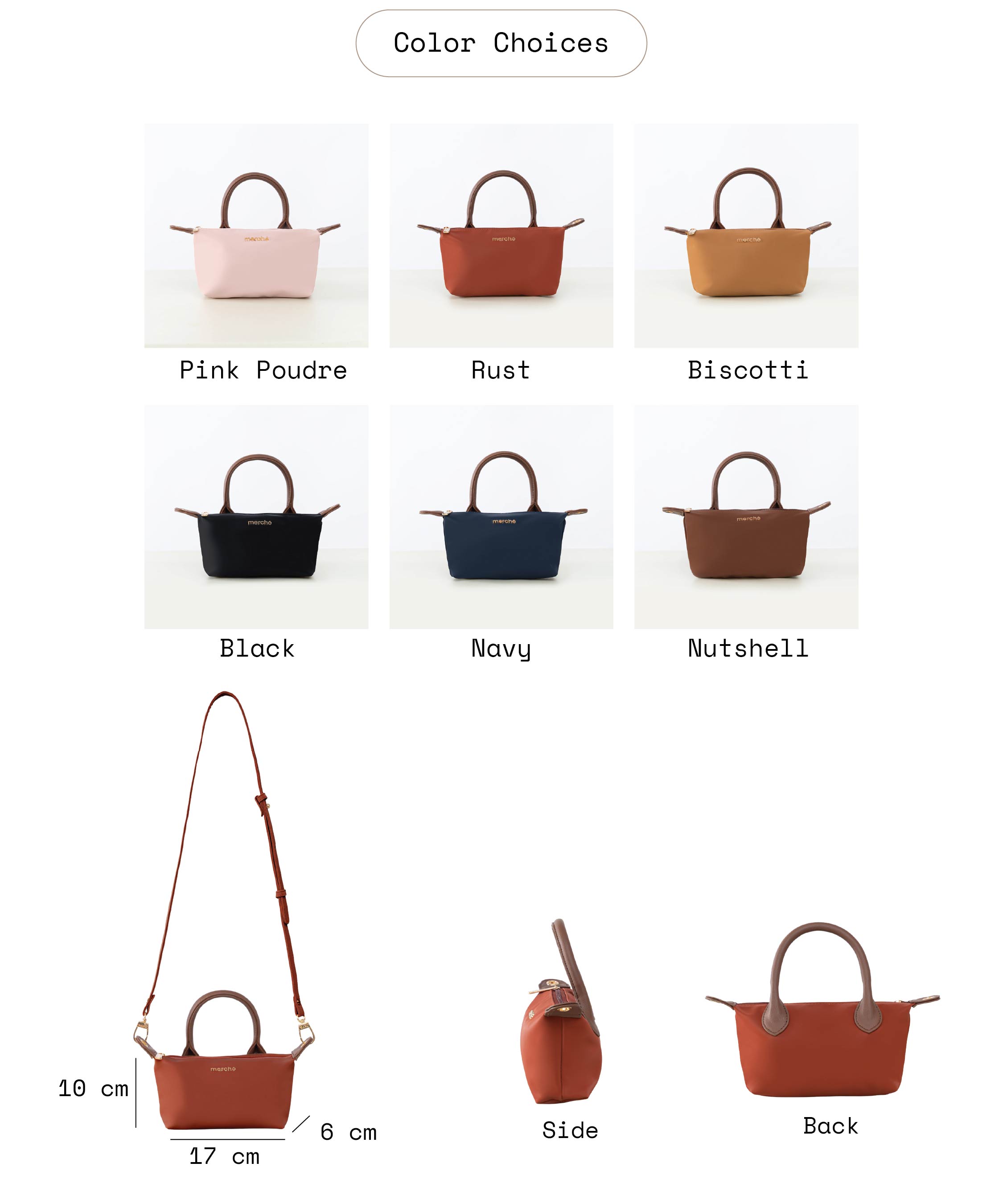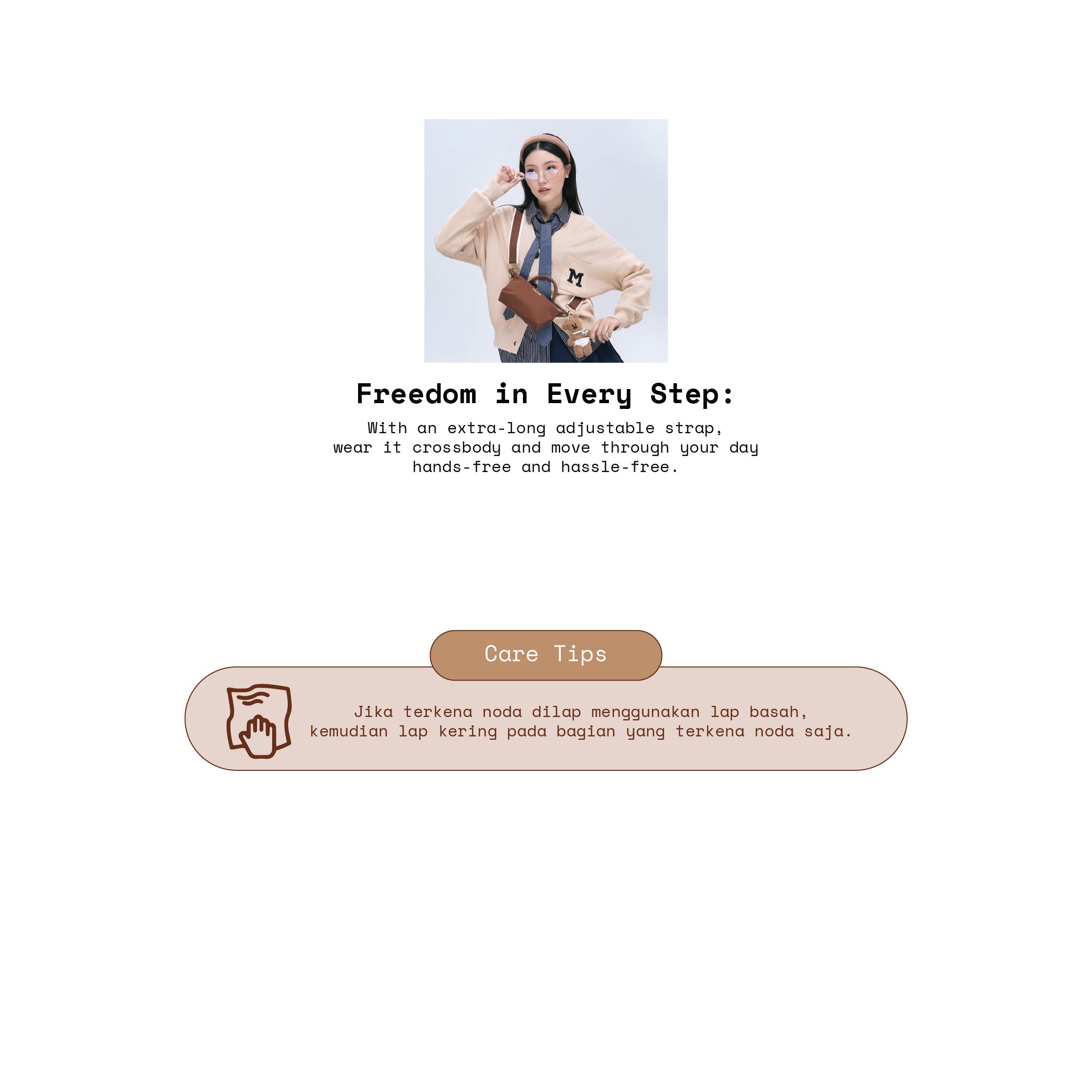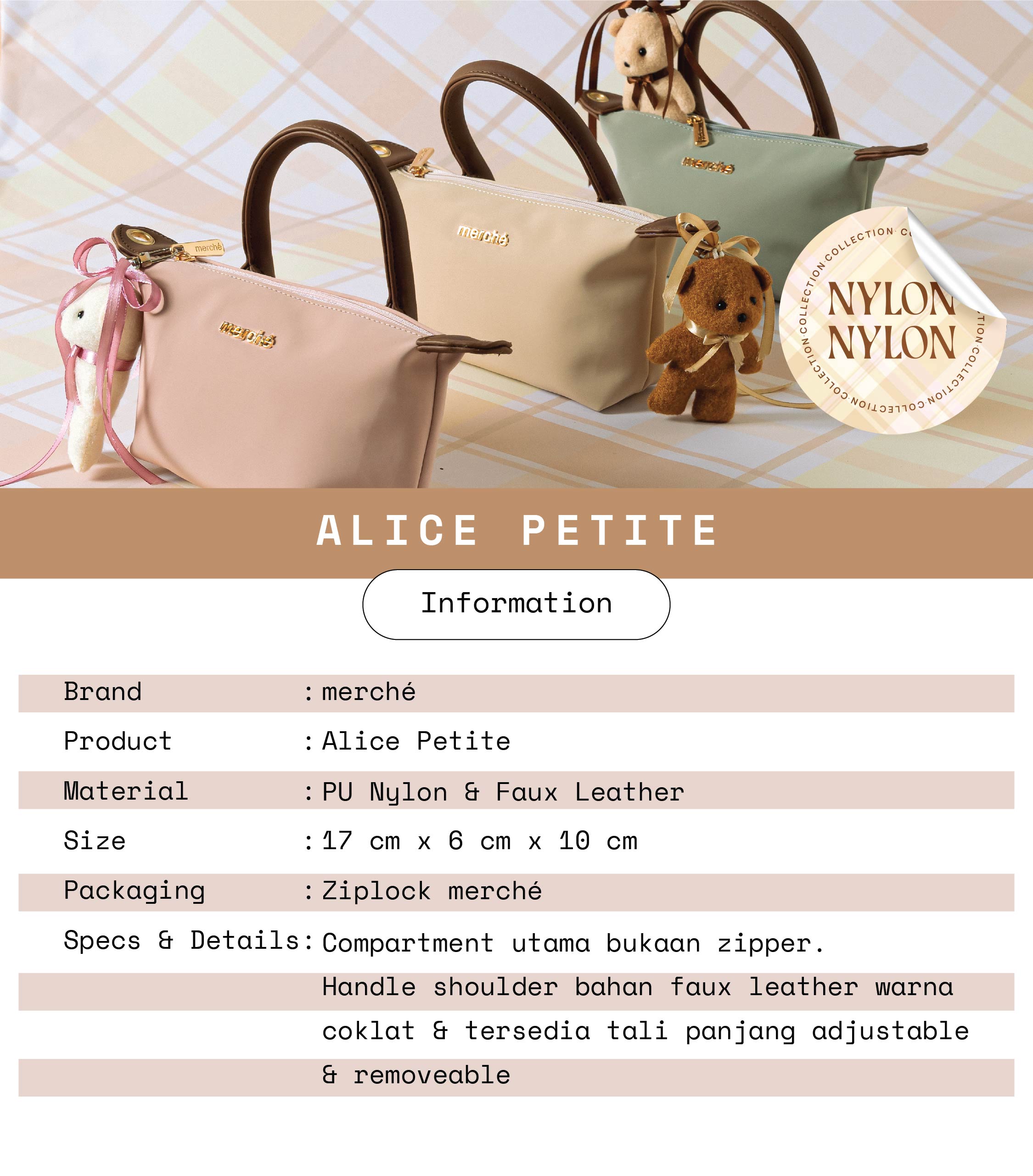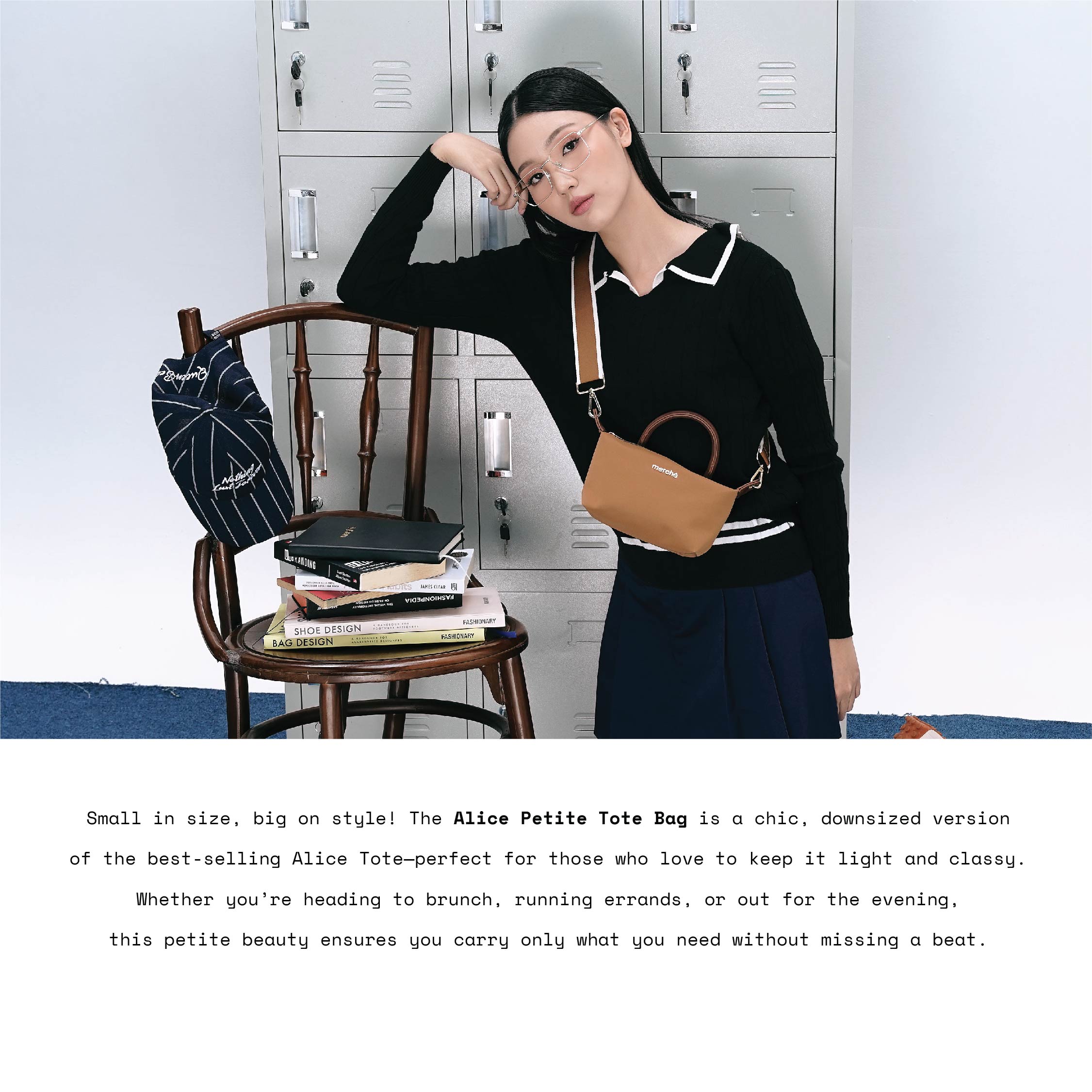 Alice Petite is a compact interpretation of the beloved Brown Label design, small in size but full of character. Combining water-resistant PU nylon with elegant brown fauxleather handles, it brings timeless charm to everyday outings. Whether you’re heading for a coffee run or a casual stroll, this petite bag fits your essentials perfectly. With an adjustable strap, it easily transforms from a chic handbag to a crossbody companion.