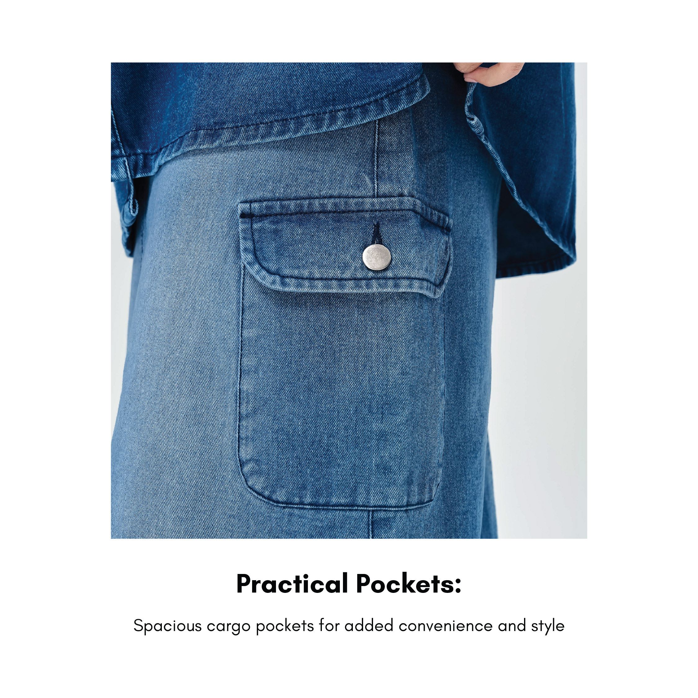 The Danya Cargo Skirt combines the rugged charm of dark denim with the practicality of cargo design. Crafted from durable denim material, this skirt features multiple functional pockets, offering both style and convenience. Perfect for those who love a laid-back, yet edgy look, the Danya Cargo Skirt is versatile enough to pair with casual tops or elevate with your favorite accessories. Whether you're running errands or enjoying a day out, this skirt is as practical as it is stylish.
