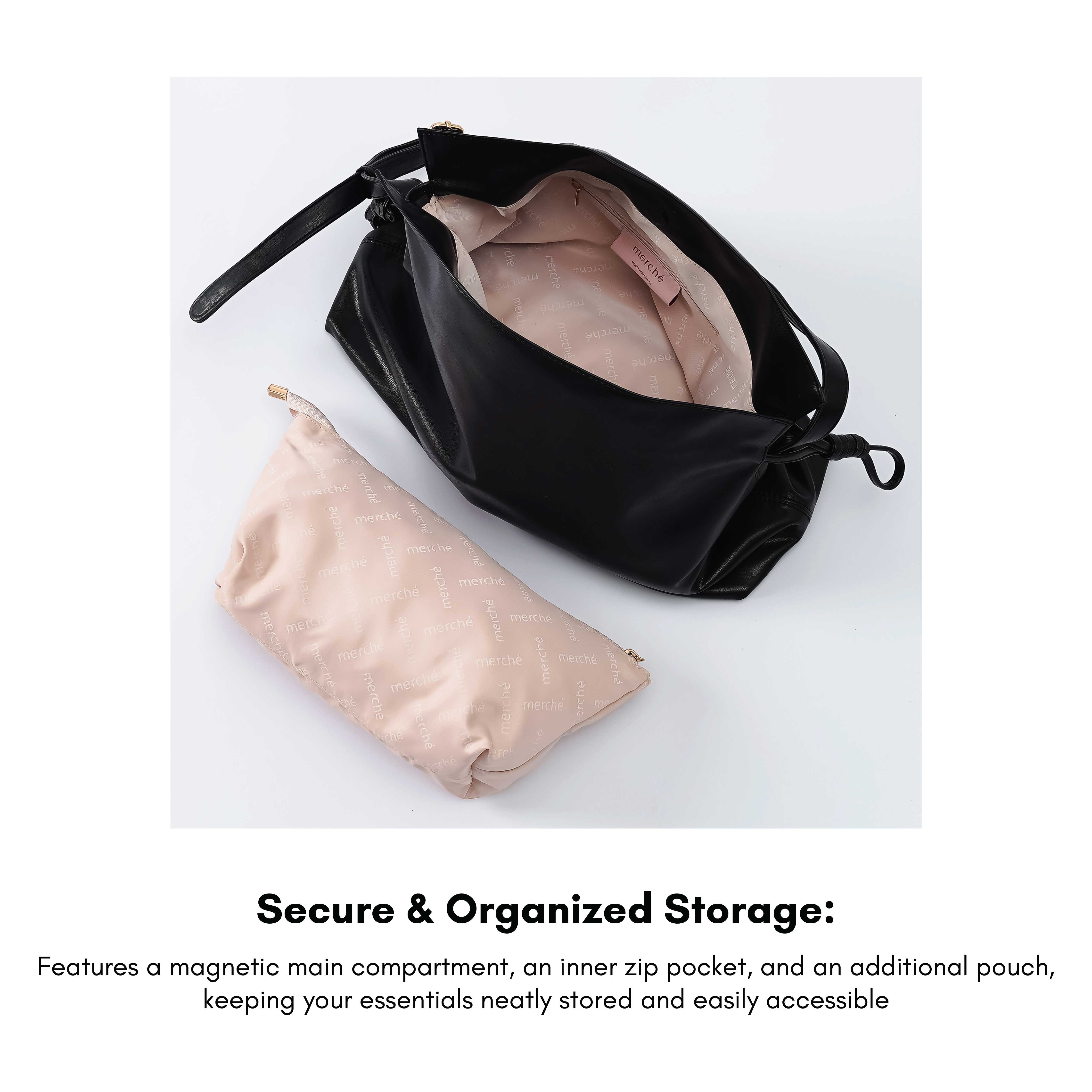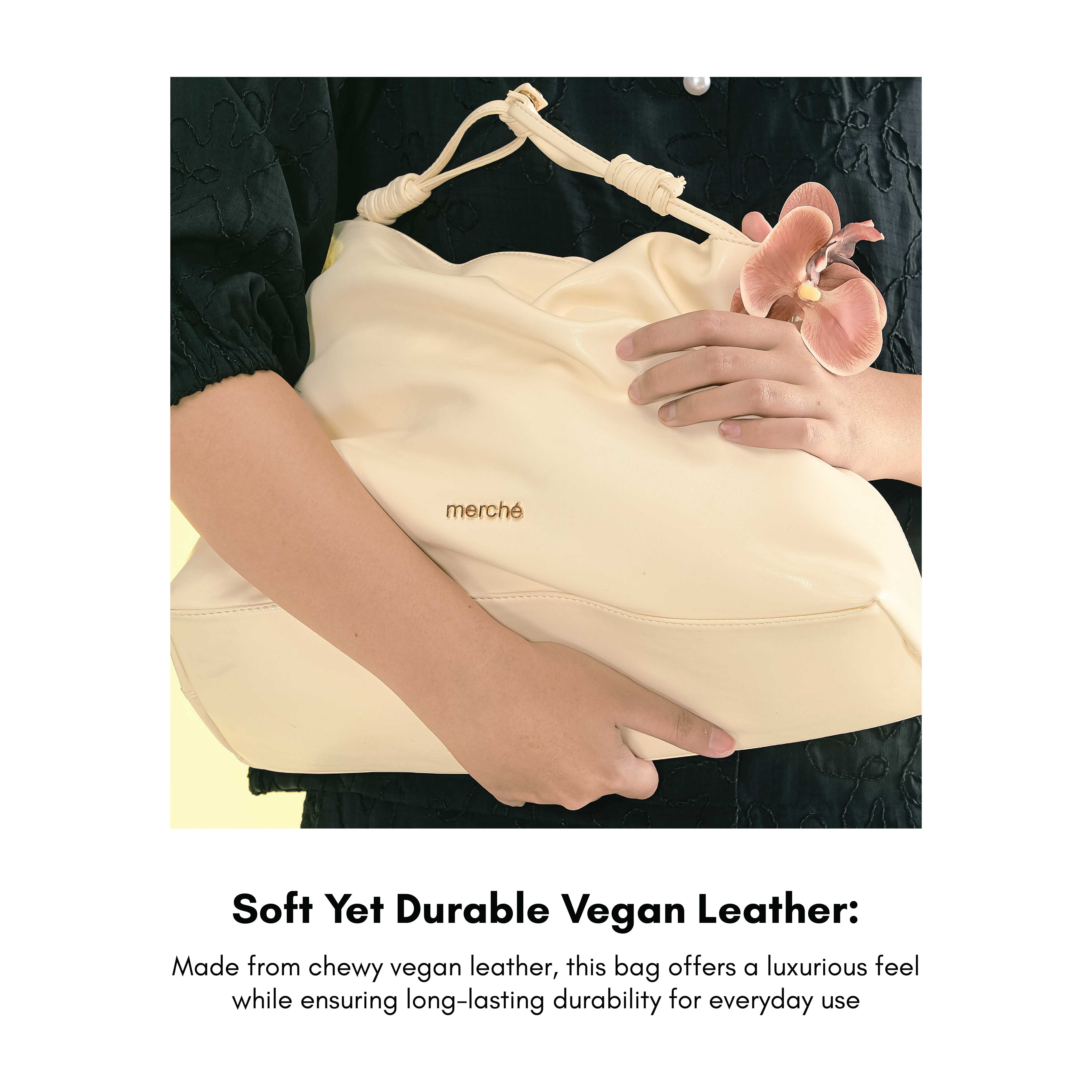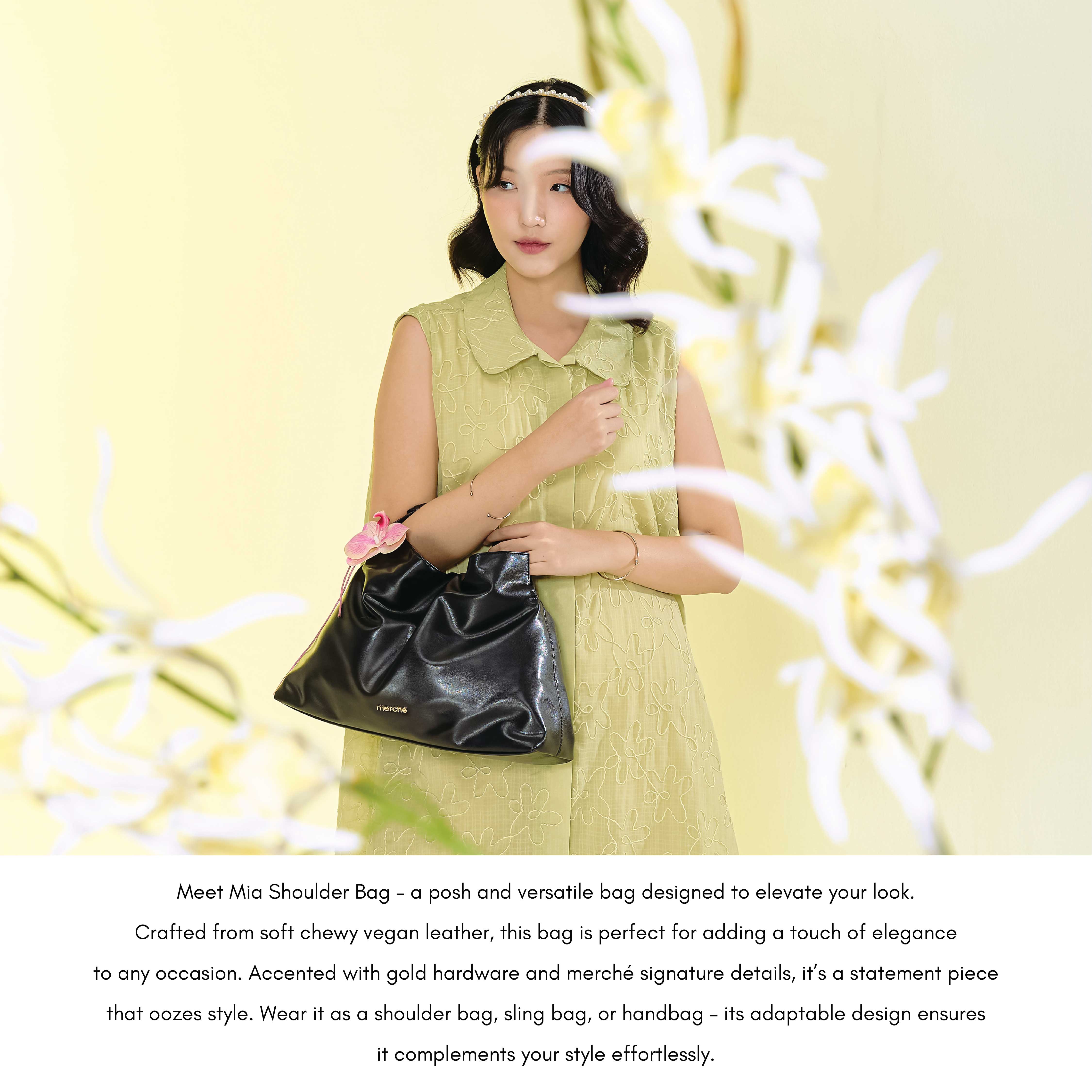 Meet Mia Shoulder Bag – a posh and versatile bag designed to elevate your look. Crafted from soft chewy vegan leather, this bag is perfect for adding a touch of elegance to any occasion. Accented with gold hardware and merché signature details, it’s a statement piece that oozes style. Wear it as a shoulder bag, sling bag, or handbag – its adaptable design ensures it complements your style effortlessly.