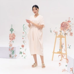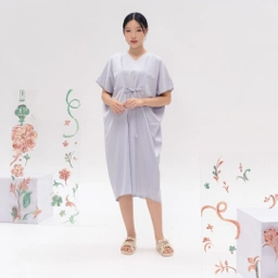Salvia Kaftan combines timeless elegance with ultimate comfort. Made from cotton jacquard, it drapes beautifully while offering a relaxed fit perfect for both formal and casual occasions. The waist tie allows you to adjust the fit to your liking, while delicate ribbon embroidery adds a subtle touch of charm. Whether you're dressing up or down, this kaftan will seamlessly elevate your look.