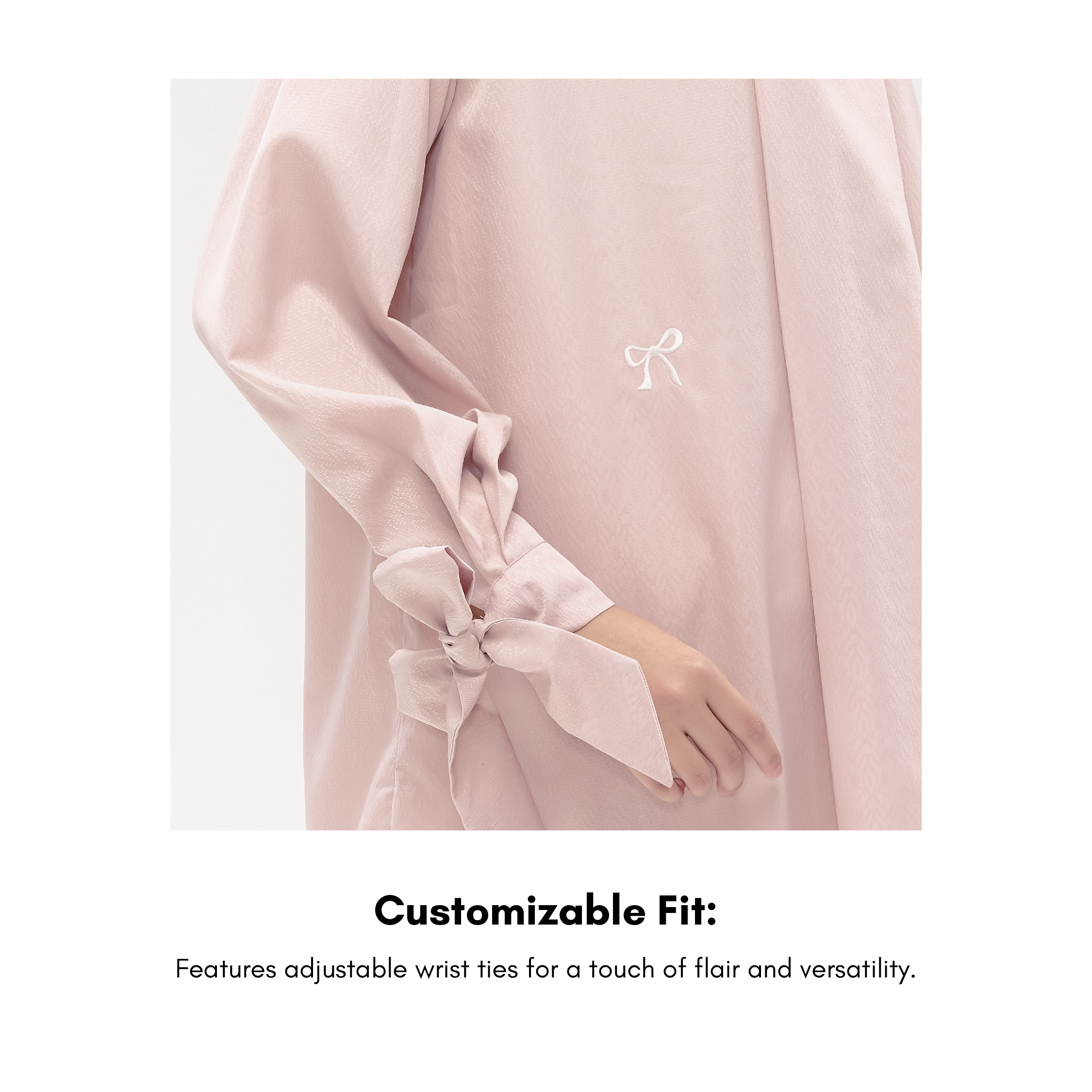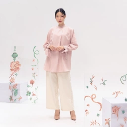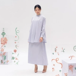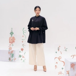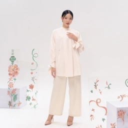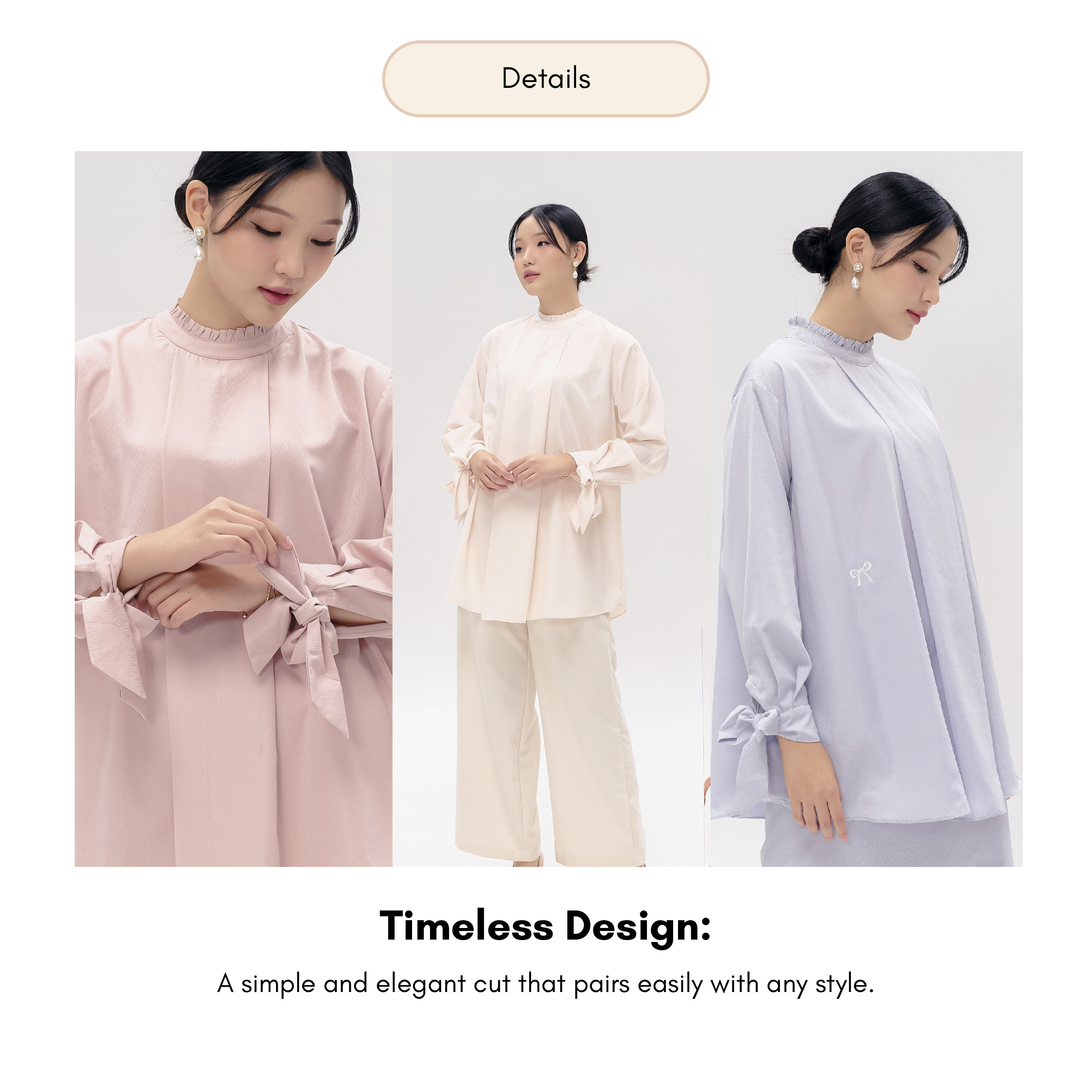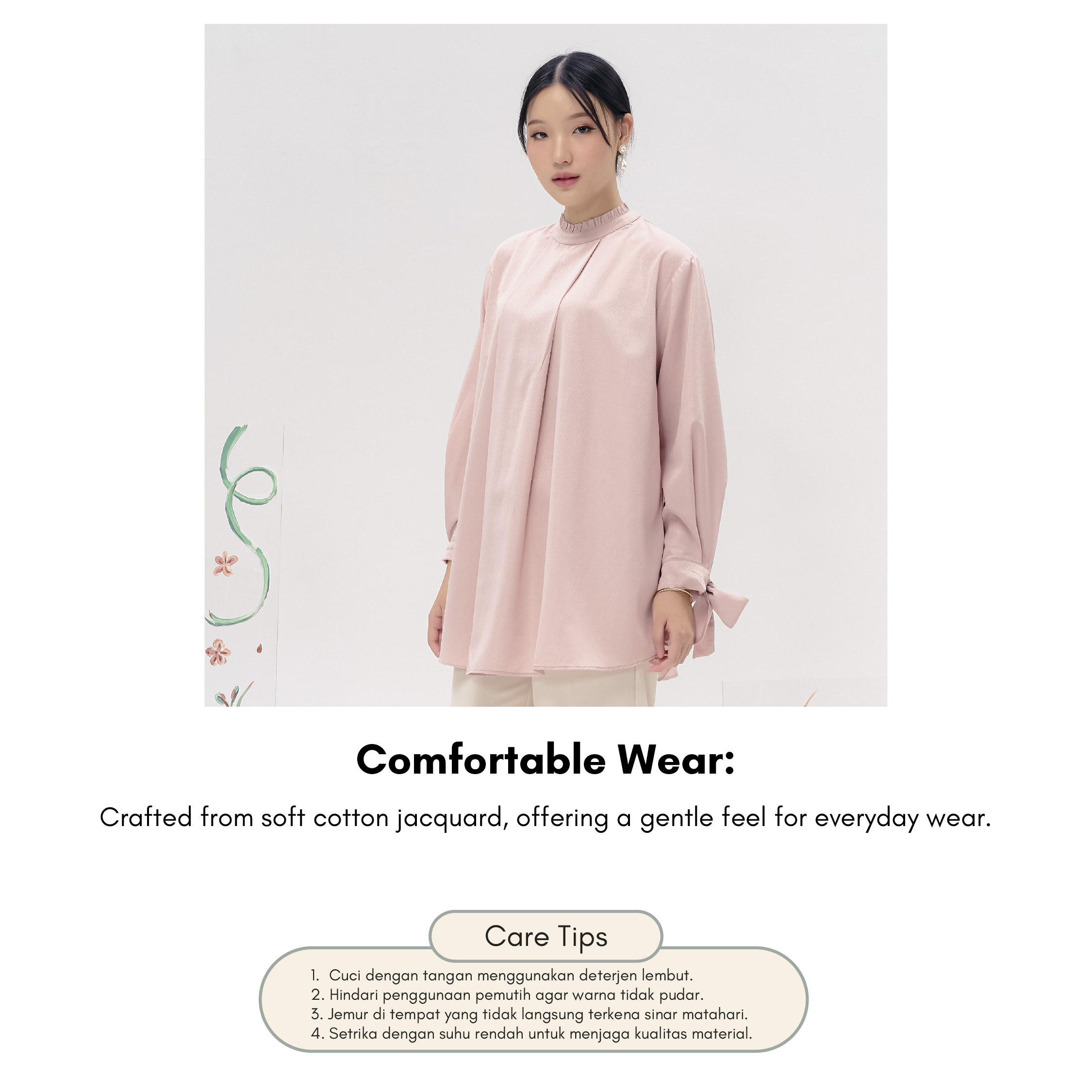 Shareen Tunic combines clean, minimal design with charming details. Made from soft cotton jacquard, it offers a flattering fit with an elegant cut. The adjustable wrist ties allow you to add a bit of flair, while delicate ribbon embroidery accents on the sides bring a feminine touch. Perfect for casual outings or adding a little elegance to everyday wear, this tunic is as versatile as it is lovely.