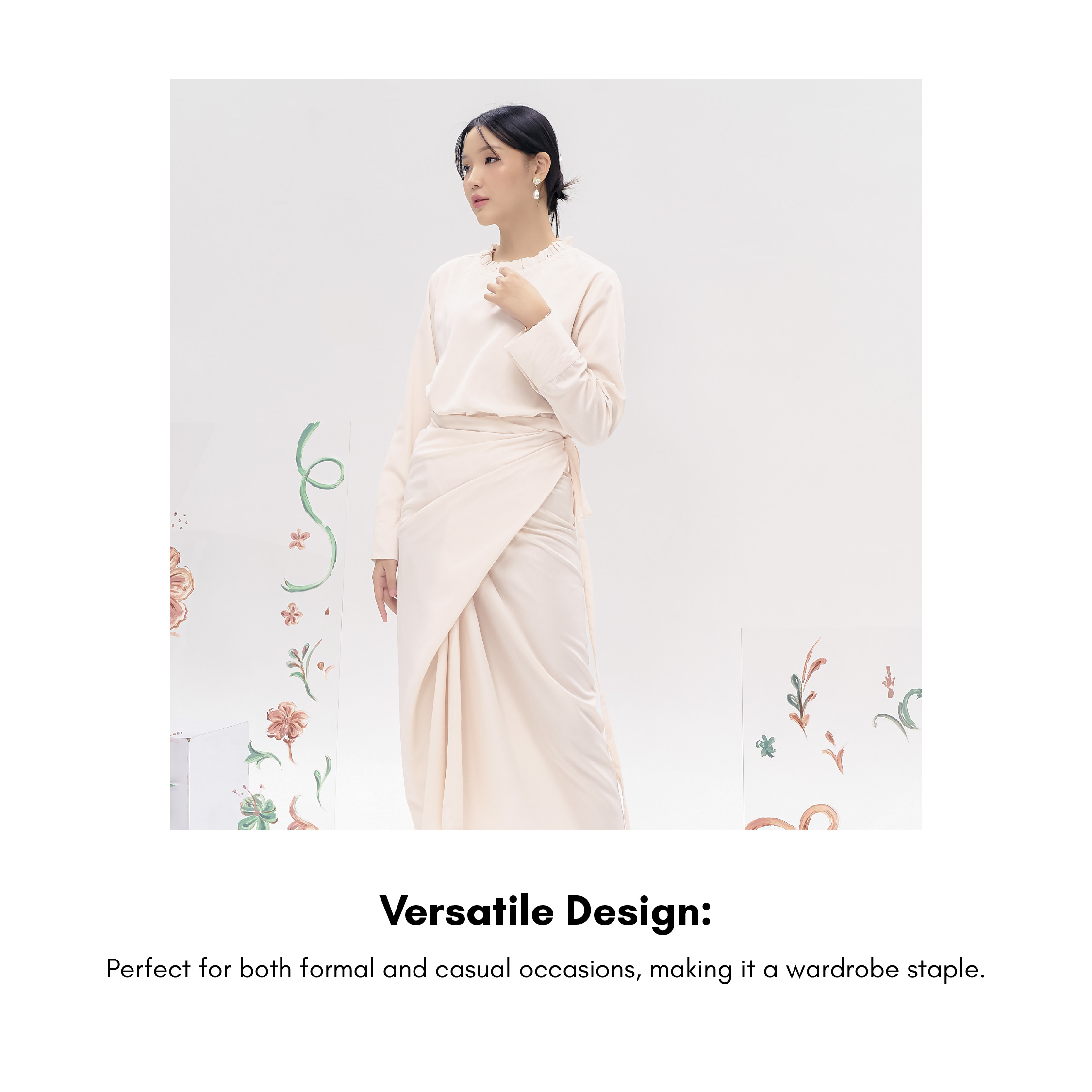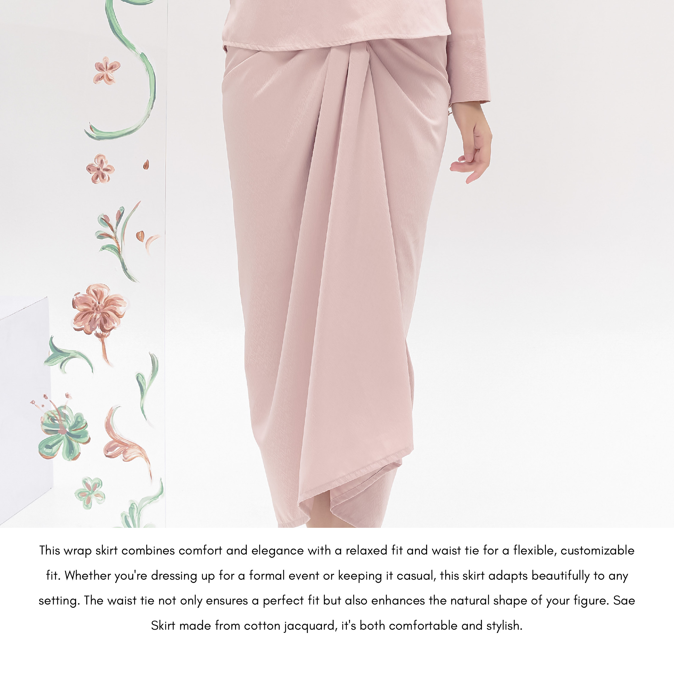 This wrap skirt combines comfort and elegance with a relaxed fit and waist tie for a flexible, customizable fit. Whether you're dressing up for a formal event or keeping it casual, this skirt adapts beautifully to any setting. The waist tie not only ensures a perfect fit but also enhances the natural shape of your figure. Sae Skirt made from cotton jacquard, it's both comfortable and stylish.