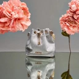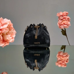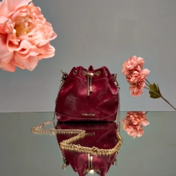 Refined glamour in a compact form, Daisy Drawstring Bag speaks for itself—this velvet bucket bag blends a soft gleam with graceful charm. A structured silhouette meets refined details, creating an effortlessly polished look. Whether carried by its lustrous pearl strap or worn with the elegant gold chain, this piece elevates any ensemble with ease.