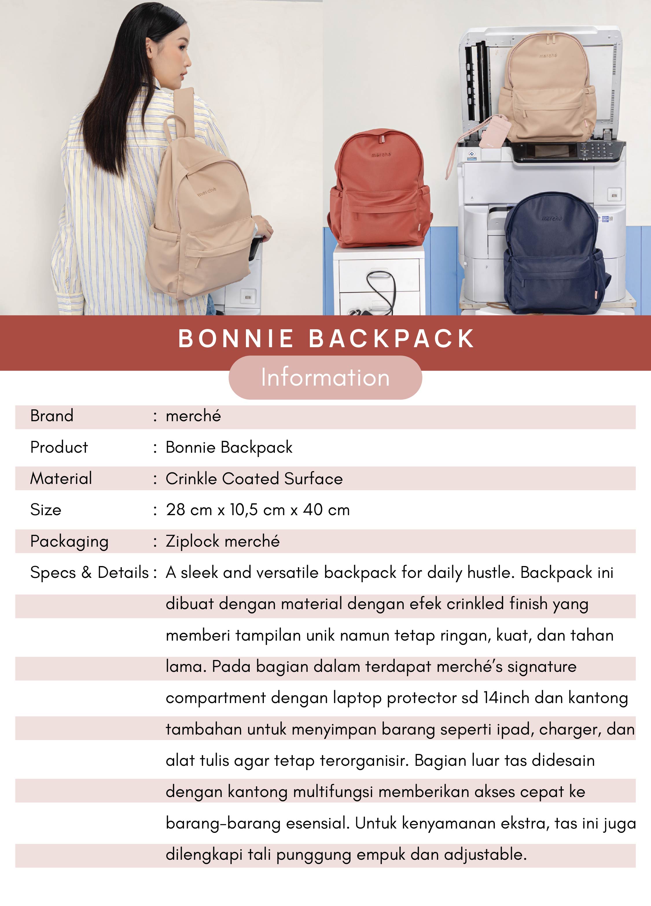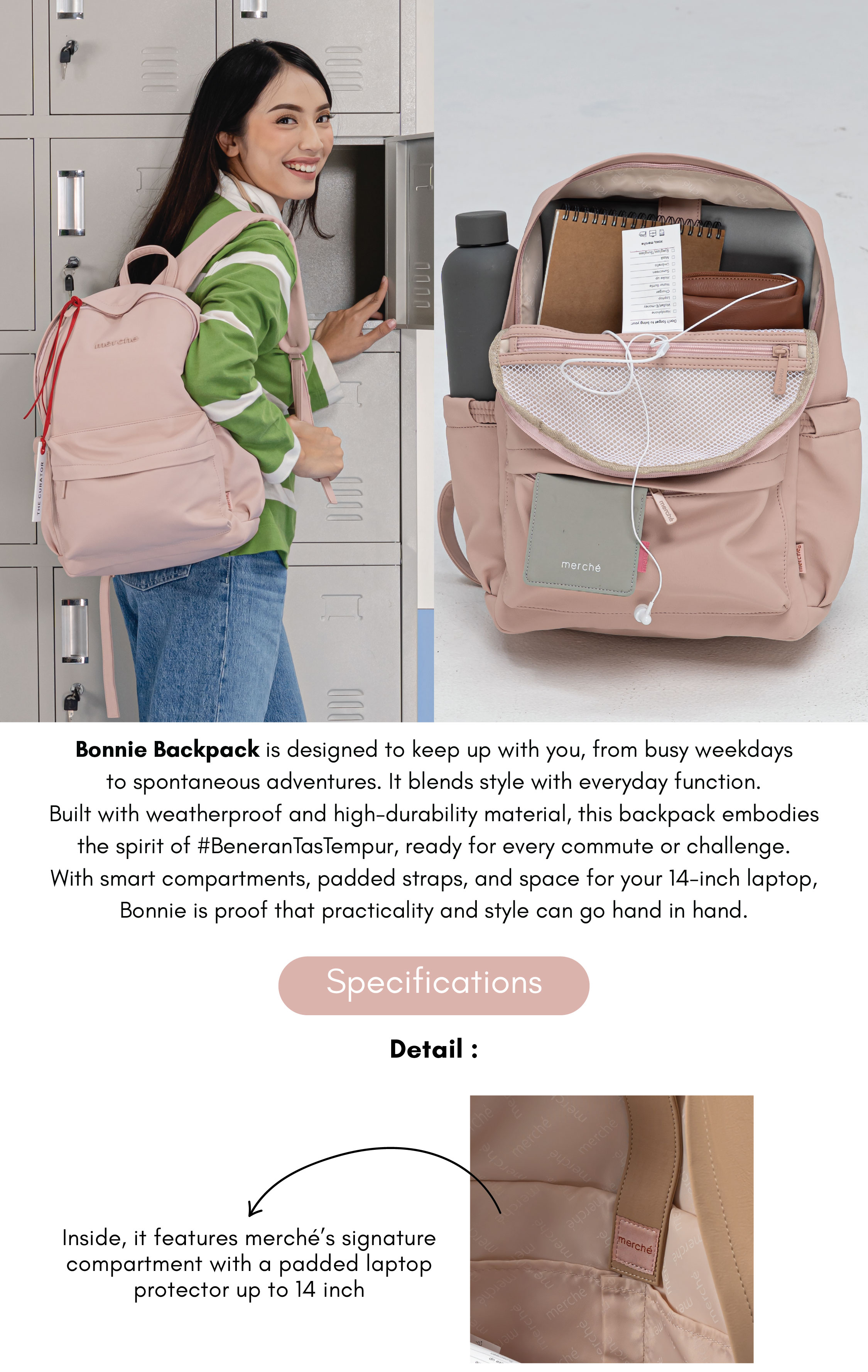Bonnie Backpack is designed to keep up with you, from busy weekdays to spontaneous adventures. It blends style with everyday function. Built with weatherproof and high-durability material, this backpack embodies the spirit of #BeneranTasTempur, ready for every commute or challenge. With smart compartments, padded straps, and space for your laptop up to 14 inch, Bonnie is proof that practicality and style can go hand in hand.