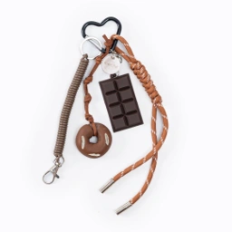 Brown Charm, a playful trio that celebrates warmth, nostalgia, and character through cozy brown tones. Each design tells its own story, from the Donut, radiating sweet charm, to the Key, channeling sporty-chic energy, and the Baseball, capturing the joy of play. Thoughtfully crafted with durable braided cords, spiral straps, and signature acrylic details, every charm is a little piece of personality ready to clip onto your bag.